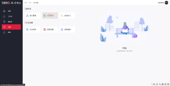 从左到右主要分为三部分:左边是我们的菜单栏目主要分为四个菜单(工作台,通讯录,功能,我的)中间是对应菜单的信息展示界面;右边是中间界面的详细信息。