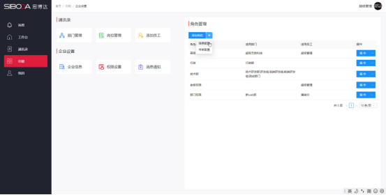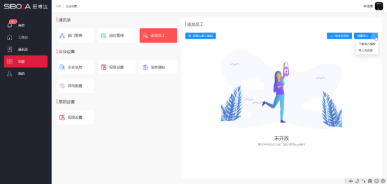 点击部门或者岗位,然后进行对应的部门或者岗位进行添加,员工入职的时候就可以选择对应的部门与岗位。