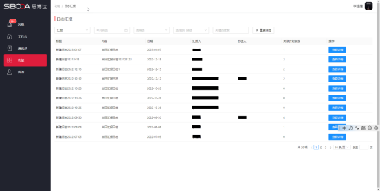 日志汇报,可以查看下属汇报上来的日志记录,还能在抄送里面查看,有抄送给当前人员的信息。管理员可以通过设置后,让员工的所有计划让领导能清晰知道