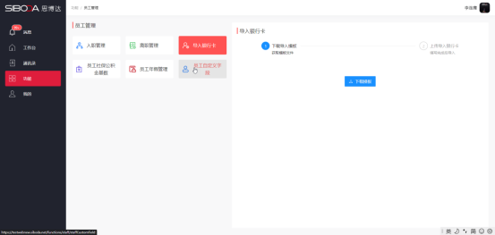 对未完善银行信息的员工,可以在此功能下载模板,进行员工的银行卡信息进行维护。